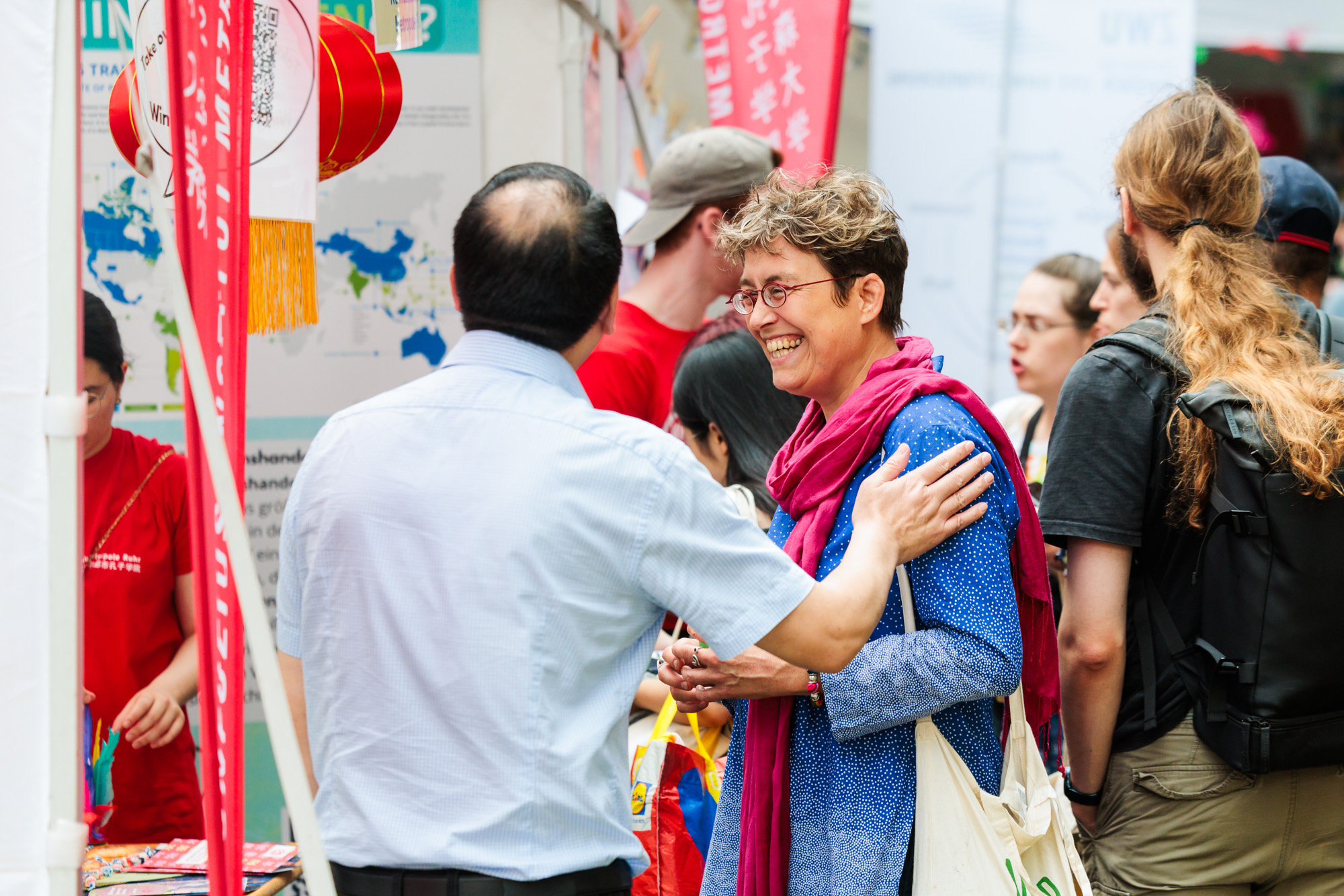 Neben den Mitmachaktionen entwickelte sich der Stand schnell zu einem lebendigen Treffpunkt für Gespräche rund um Nachhaltigkeit in China, die Bedeutung von Tee in der chinesischen Kultur sowie Themen des interkulturellen Austauschs.