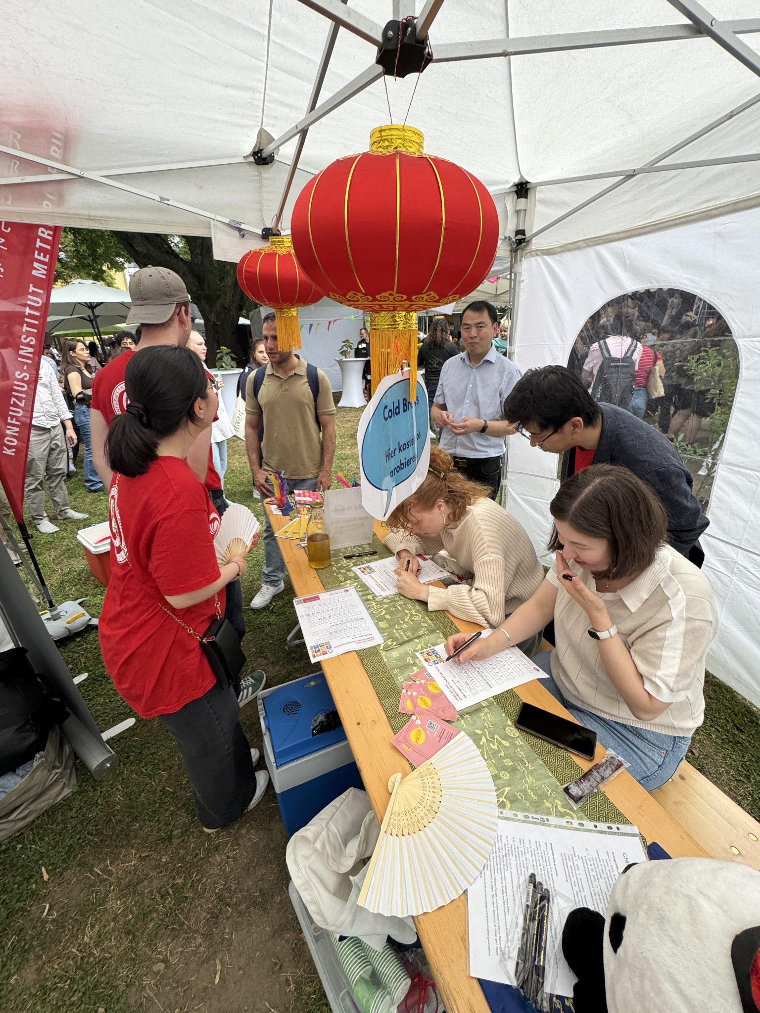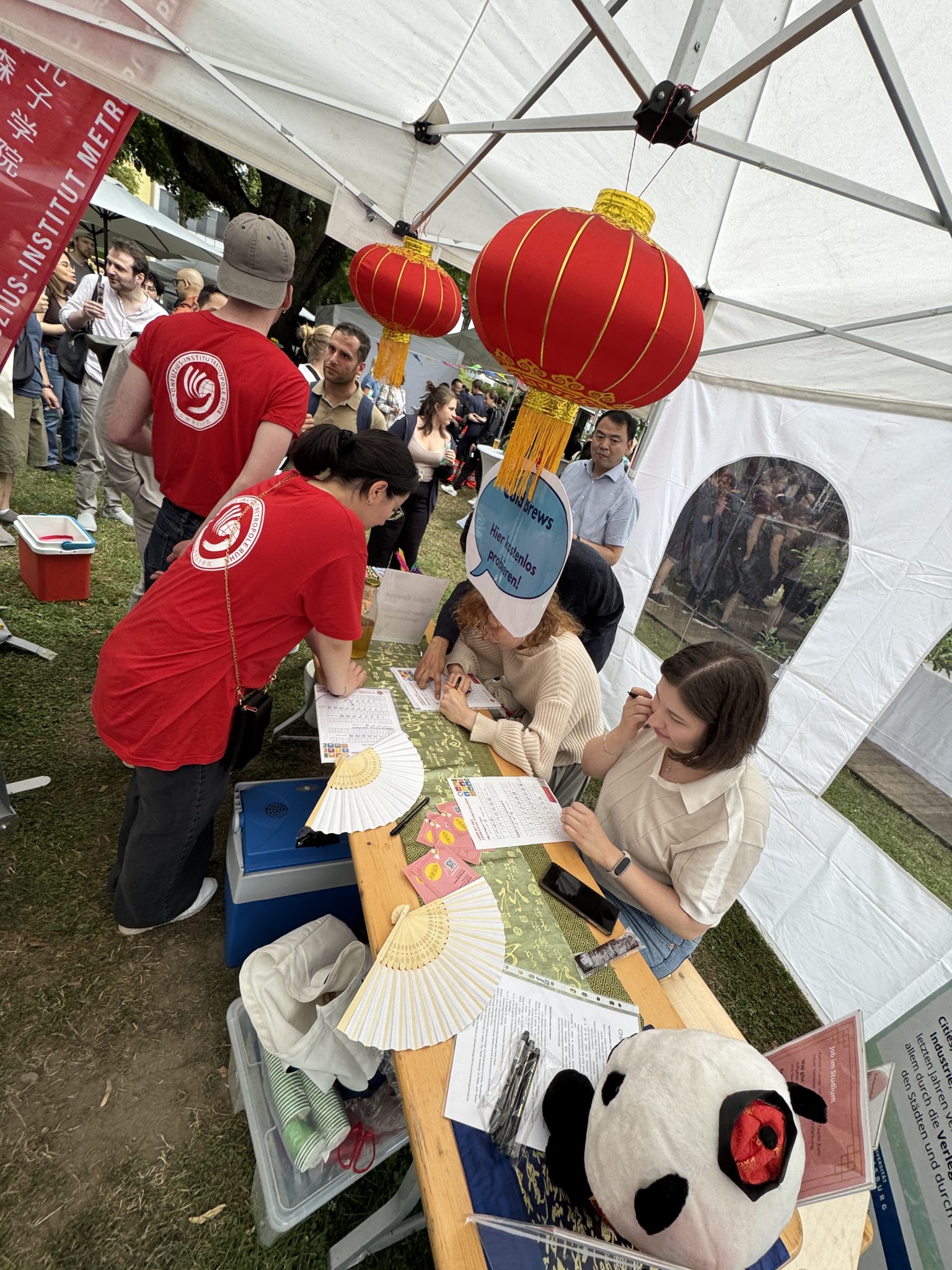 Am Stand konnten die Besucherinnen und Besucher ihr Wissen bei einem Quiz rund um Umwelt- und Nachhaltigkeitsthemen in China unter Beweis stellen. Neben Informationen und Wissenshäppchen gab es tolle Souvenirs zu gewinnen – heißbegehrt waren bei strahlendem Wetter die kühlenden Handfächer. Für eine wohltuende Erfrischung an diesem Sommertag sorgte hausgemachter Cold Brew aus chinesischem weißem Tee – eine Einladung, die Vielfalt der chinesischen Teekultur mit allen Sinnen zu entdecken.